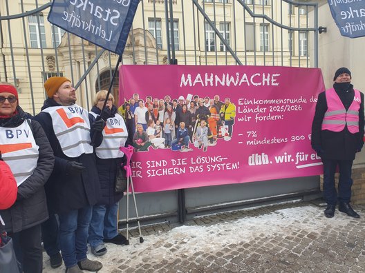 Mit den Mahnwachen vor der Staatskanzlei wollten die Gewerkschaften des dbb brandenburg in der Woche vom 05. bis 09. Januar 2026 ein Zeichen setzen und ihren Forderungen zu den Tarifverhandlungen Nachdruck verleihen.