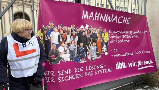 Mit einer Mahnwache wollen die dbb-Gewerkschaften die Verhandlungspartner an ihrem Verhandlungsort in Potsdam begrüßen und ihren Forderungen lautstark Nachdruck verleihen.